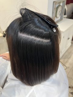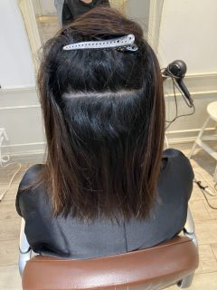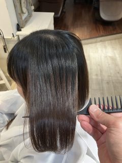 少し内巻きや外ハネをしても綺麗に収まりが出るように施術させて頂きました。
